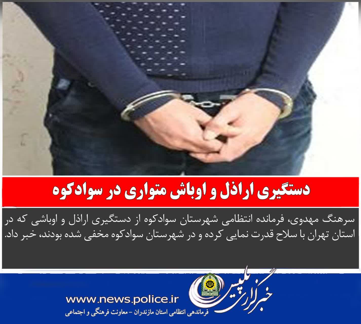 فرمانده انتظامي شهرستان سوادکوه از دستگيري اراذل و اوباشي که در استان تهران با سلاح قدرت نمايي کرده و در شهرستان سوادکوه مخفي شده بودند، خبر داد.