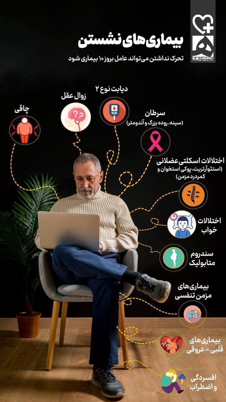 اینفوگرافی| بیماری‌های مربوط به نشستن و کم‌تحرکی