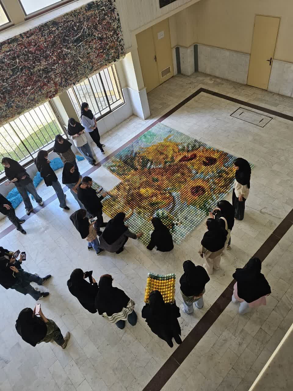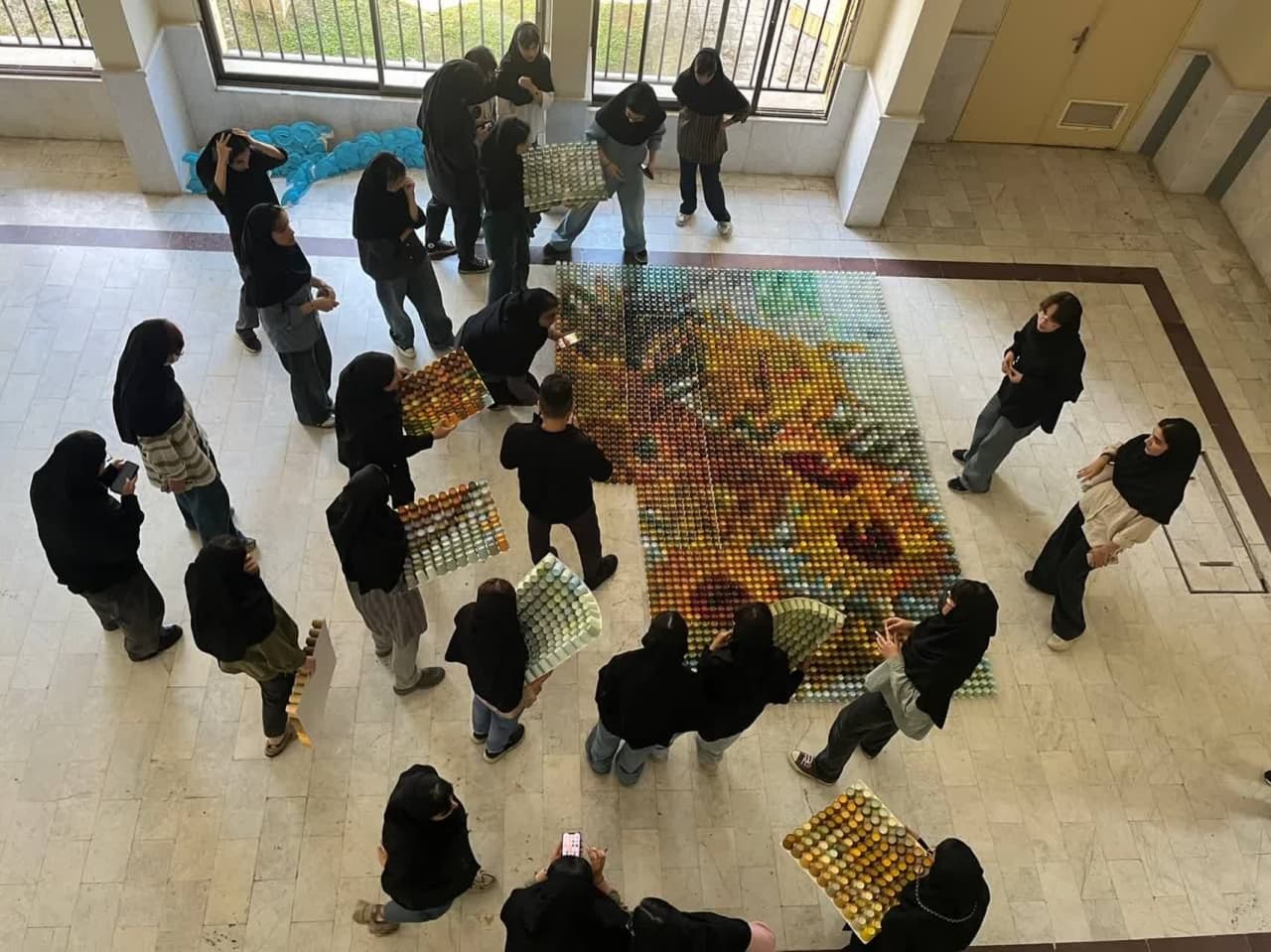 بر اساس این گزارش، این اثر هنری معاصر بر اساس چیدمان ۶۳۰۰ لیوان کاغذی از نظام رنگی درون اثر اقتباس و به راهنمایی دکتر مسعود محمدزاده عضو هیات علمی دانشگاه مازندران به صورت هنر چیدمان انجام پذیرفت.