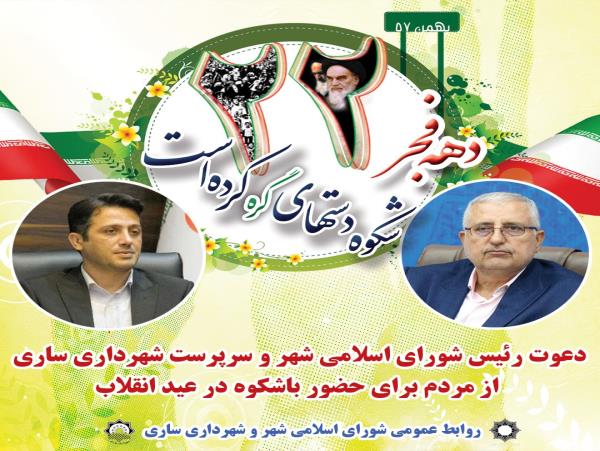اینجانبان به نمایندگی از همه خادمان مردم شریف ساری در مجموعه مدیریت شهری، ضمن تبریک اعیاد بزرگ شعبانیه و سالگرد پیروزی انقلاب اسلامی ، از اقشار مختلف ملت با عظمت ایران اسلامی، گروهها، جریانها، احزاب سیاسی با تمامی سلایق و گرایشهای گوناگون دعوت به عمل می آورد تا با حضور حماسی، آگاهانه، پرشور و انقلابی خود در صفوفی متحد و یکپارچه در مسیرهای راهپیمایی، به پاس احترام به شهدای انقلاب اسلامی، دفاع مقدس و مدافعان حرم به ویژه س.ر.د.ا.ر سپهبد شهید ق.ا.س.م س.ل.ی.م.ان.ی و تجدید بیعت با رهبر معظم انقلاب حضرت آیت الله خامنه ای «مدظله العالی»، حماسه الهی دیگری خلق کنند چرا که این حضور پرشور، تجلی وحدت و انسجام ملت شریف ایران ، پیامی کوبنده برای بدخواهان و منشاء یأس دشمنان انقلاب و همچنین تامین کننده امنیت و سلامت اجتماعی مردم قدرتمند ایران اسلامی خواهد بود.