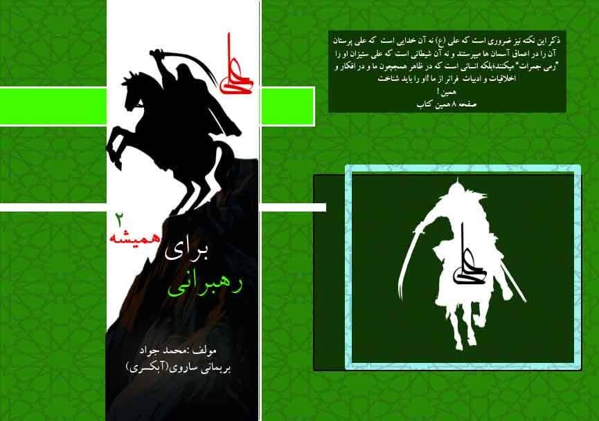 این کتاب شامل بخشهای متنوعی از جمله؛ مقدمه تحلیلی انتشارات در مورد سیره حضرت علی (ع)، جزوه تخصصی “رهبرانی برای همیشه” (ارائه شده در مسجد بقیهالله)، متن سخنرانی “علی و روشنفکر پیرو او”، نوشتاری با عنوان “مصائب علی”، بخش ویژه “شورانگیزهای علوی” (تحلیلی بر مداحیهای مرتبط با ایشان) است.